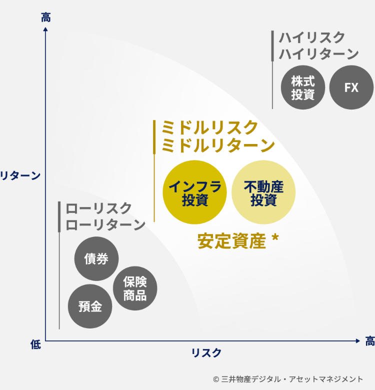 ミドルリスク・ミドルリターンの資産です。